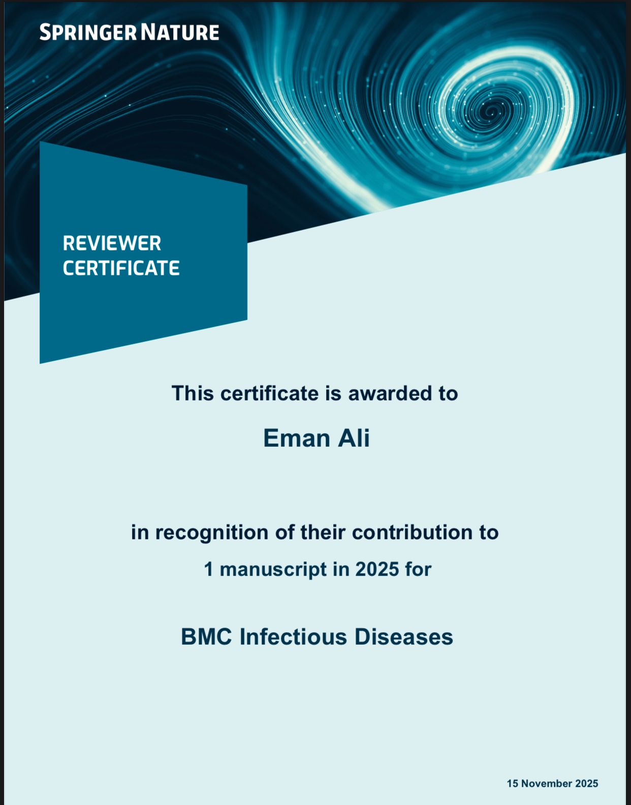اختيرت التدريسية في كلية الصيدلة في جامعة البصرة الاستاذ الدكتور ايمان طارق علي الاحمد مقيماً علمياً لمجلة BMC Infectious Diseases